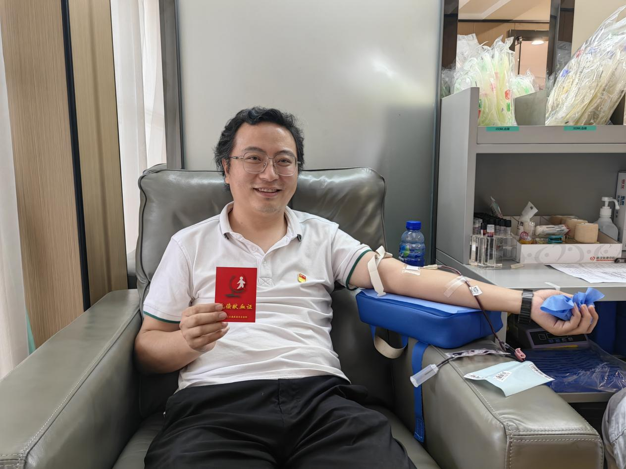 体验环节,同学们亲身体验了献血前的征询和血型检测。在曾中良的带动下,部分党员志愿者现场挽臂献血,以实际行动响应国家对无偿献血事业的号召,践行纺大青年的使命与担当。