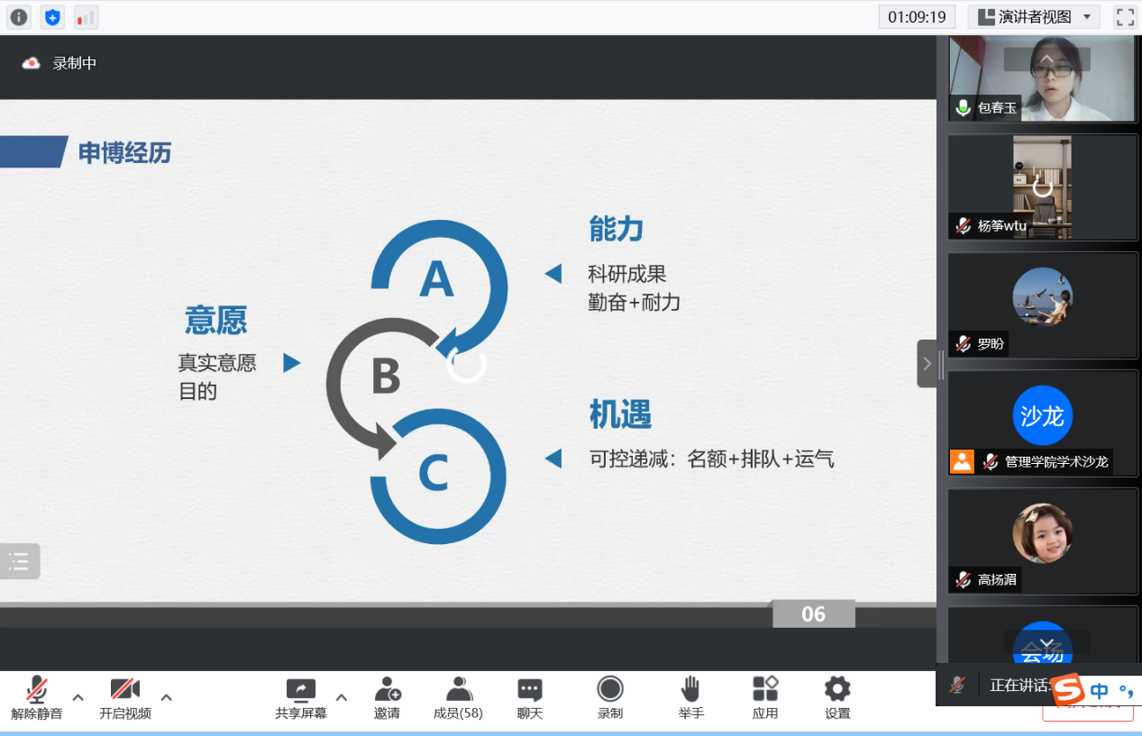 6月30日下午,公司在7-513以线上线下同时进行的方式举办考博经验分享会,旨在充分发挥研究生朋辈力量,激发公司研究生考博热情,明确考博目标,对考博有一个更全面更具体的规划。本次交流会邀请了公司成功考取南京大学博士的2021届优秀毕业生包春玉来分享考博心路历程。本次活动由学院杨筝博士主持,古天乐代言太阳集团部分教师及全体研究生积极参会。