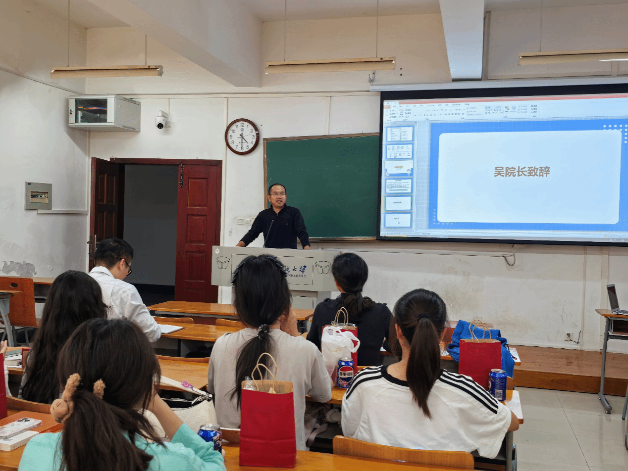 在学习规划环节,相关负责人详细解读了 CMA 方向班的四年课程规划。从大一的基础课程夯实,到大二、大三的专业课程深化与实践能力提升,再到大四的备考冲刺与职业规划指导,每一个阶段的学习目标与任务都清晰明确,为新生们勾勒出了清晰的学习路径。同时,现场还为新生开通了会计前导网课账号,助力新生提前熟悉专业知识,为后续学习做好准备。活动中,对新生中的优秀代表进行了现场表扬。有 2 位同学在开班前就提前参与了网课看课指导,展现出了极强的学习主动性与积极性。学院为这 2 位同学派发了玩偶挂件作为奖励,鼓励全体新生以他们为榜样,保持积极学习态度,提前规划学习进程。