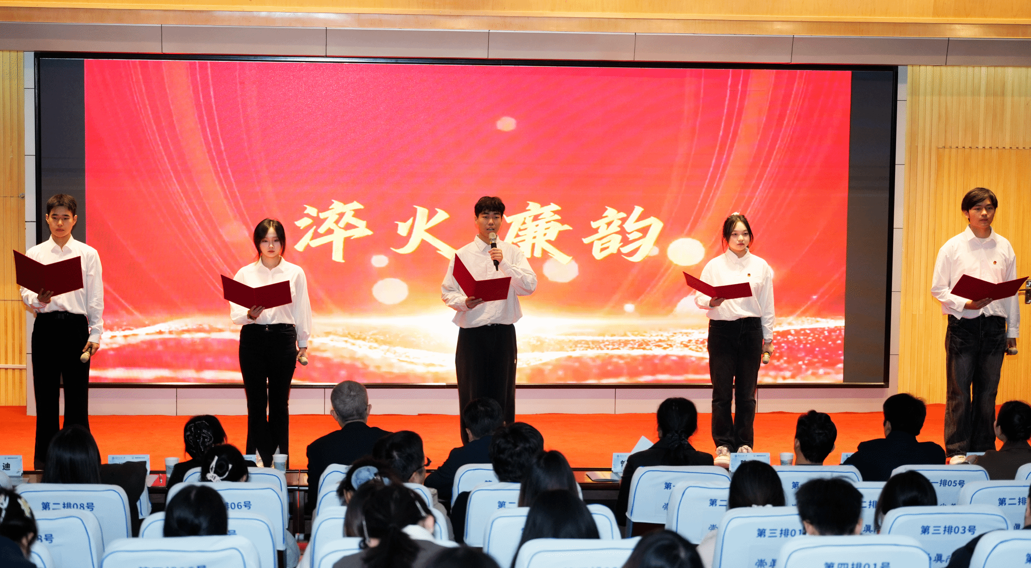 传媒学院以《诚风廉韵,尚俭戒奢》为题,讲述古今节俭美德与廉洁典故,传递廉洁公开透明的理念,歌颂以笔为剑、以声传廉的担当,呼吁青年尚俭戒奢、守护清风正气。