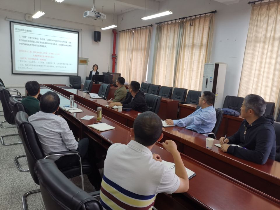 经理助理杨筝博士从“十三五”研究生工作情况、“十四五”发展思路与目标、困境与机遇、任务与举措、支撑与保障等方面,对学院团队建设发展及研究生相关工作进行了详细汇报。