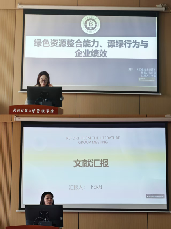 李菁同学的论文《绿色资源整合能力、漂绿行为与企业绩效——恶性竞争的调节中介作用》分享,实证发现绿色资源整合能力对漂绿行为有负向影响,且漂绿行为存在部分中介作用、恶性竞争有正向调节作用。卜乐丹同学分享了《代理销售下双边平台的最优延保策略》,通过三阶段Stackelberg博弈模型从平台角度分析延保策略,得出不同市场规模、佣金率下平台与制造商的最优延保策略及双赢条件等结论。