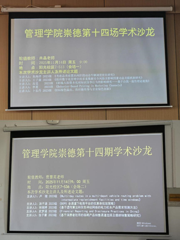 本期崇德学术沙龙以多元视角碰撞学术智慧,用扎实研究回应管理领域的现实命题。同学们聚焦前沿,带来的既有模型构建与实证分析的严谨探索,也有跨学科融合的创新思考,为相关研究提供了鲜活思路与有益借鉴。